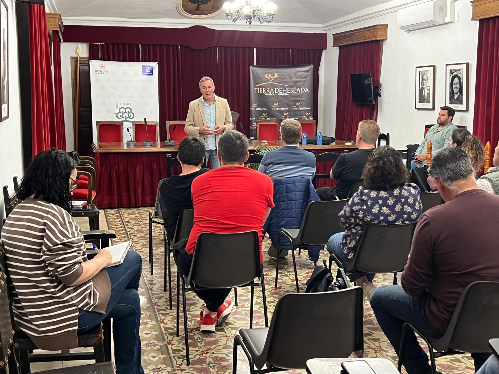 ADERCO se ha reunido recientemente con emprendedores y emprendedoras de Barcarrota en el Salón de Plenos de la Localidad. El objetivo, dar a conocer las ayudas del programa Leader para la creación, mejora y modernización de empresas en sectores como la industria, el comercio, el turismo o los servicios. Han estado presentes el gerente de ADERCO, Joaquín Fuentes, y el técnico Francisco Gordillo, que han comentado las características y requisitos de esta línea de subvenciones, así como resolución de dudas sobre las mismas. También han asistido la agente de desarrollo de Barcarrota, Laura Tanco, y el alcalde y vicepresidente de ADERCO, Miguel Rodríguez, quien ha remarcado la buena oportunidad para las empresas de Barcarrota y de la Comarca, con ayudas que pueden superar el 50% de la inversión. La convocatoria permanecerá abierta hasta el 30 de junio y cuenta con una dotación global de 1.200.000 euros. Desde las oficinas de ADERCO se está a disposición de las personas interesadas para una atención personalizada.