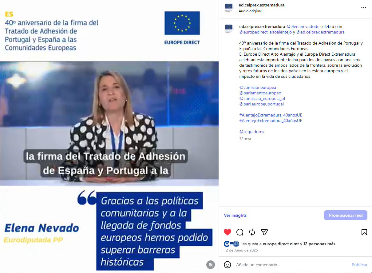 Los Europe Direct de Extremadura y Alto Alentejo celebran juntos los 40 años de la firma del Tratado de Adhesión